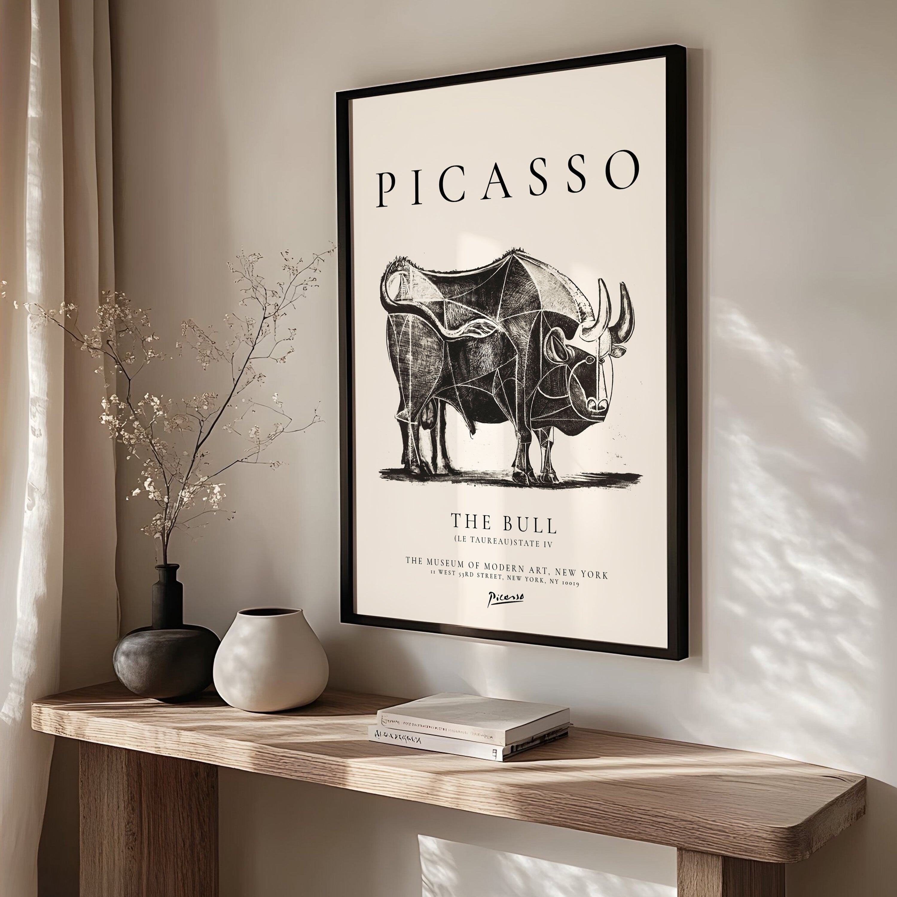 Un diseño con la pintura de Pablo Picasso (Pintor y escultor español, creador del cubismo) El Toro(1945), Museo de arte moderno de Nueva York. Una maravillosa opción para decorar un espacio. Código: AR/25-27