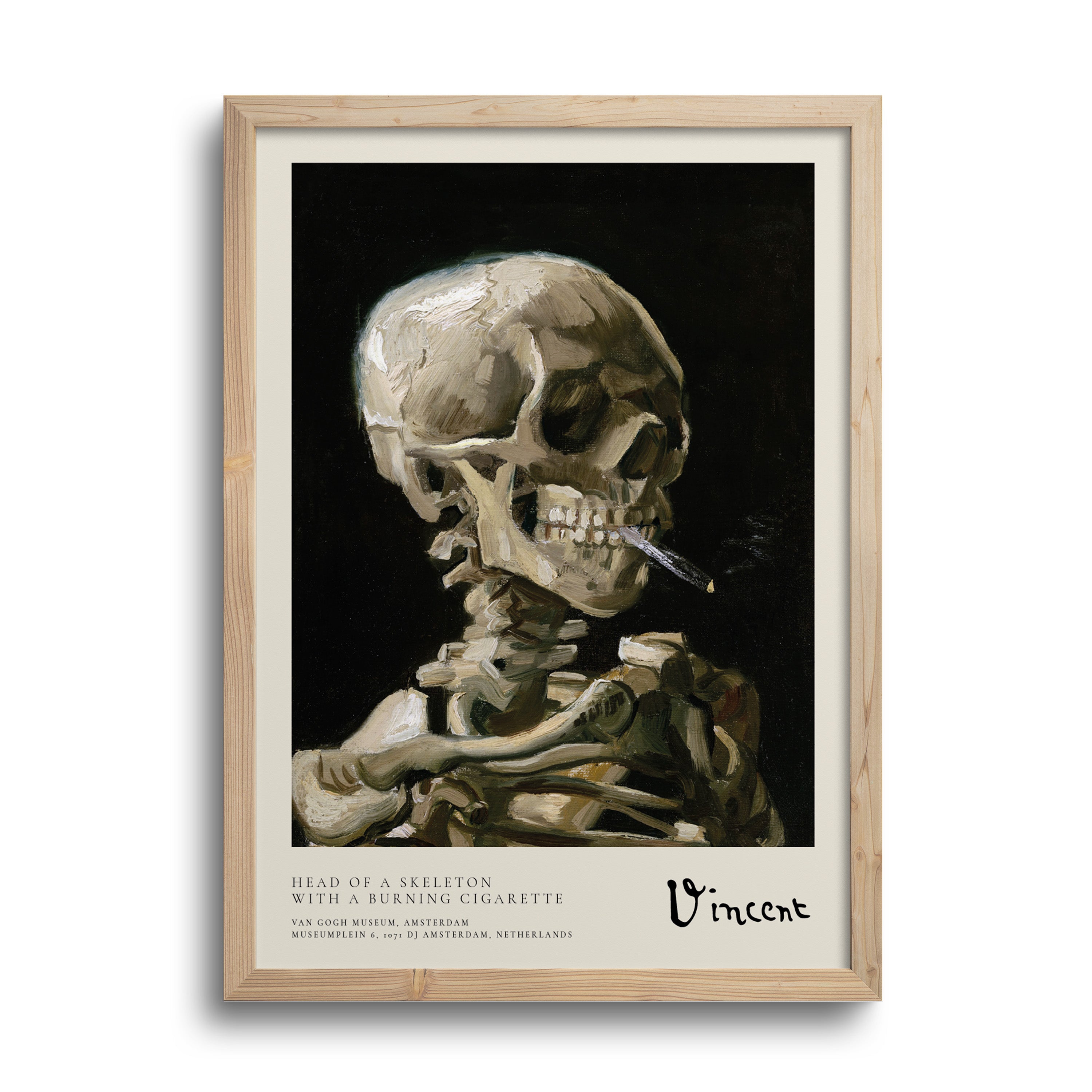 Reproducción y retoque de la obra "Cráneo de un esqueleto con un cigarrillo encendido" 1886 del famoso artista neerlandés Vincent Van Gogh (1853-1890), postimpresionista reconocido por sus pinturas coloridas. Maravillosa opción para decorar cualquier espacio Código: AR/23-19